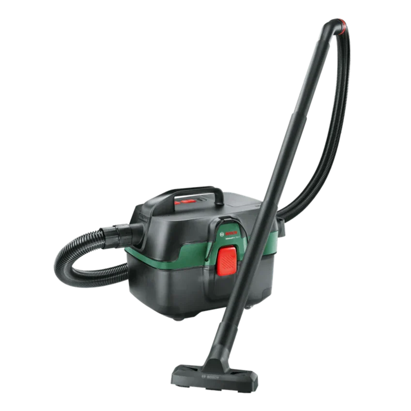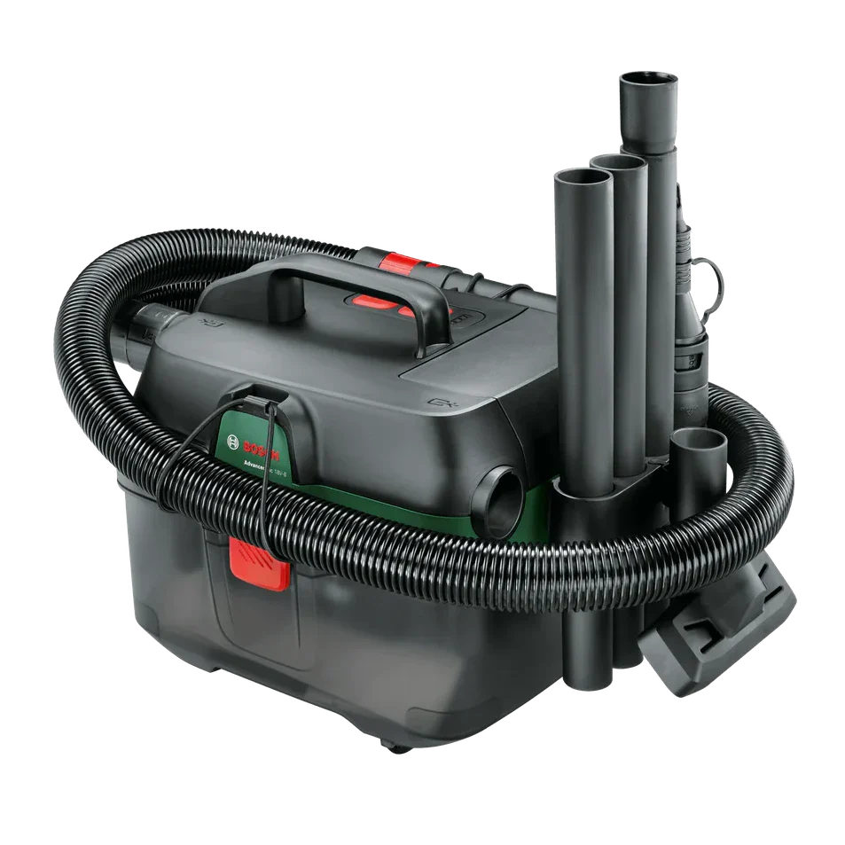 The AdvancedVac 18V-8 handheld is the versatile 3-in-1 vacuum cleaner for dirt removal and filling tasks indoors and outdoors. Thanks to a useful range of accessories, wet and dry dirt or dust, as well as coarse and fine debris around the house, garden, car or motorhome, quickly become a thing of the past. The vacuum cleaner is easily connected to power tools from Bosch Home & Garden and other manufacturers via a flexible universal adapter, ensuring a clean work area. This is a 3-in-1 vacuum cleaner that also pumps and empties with an integrated filling function, making it useful for blowing garden leaves or blowing up air mattresses and pool toys. Enjoy the convenience of additional battery life in economy mode and the 8-litre container volume, as well as wheels and extension tubes for easy floor cleaning. The tool belongs to the POWER FOR ALL ALLIANCE. One battery can operate a wide range of tools from different brands.