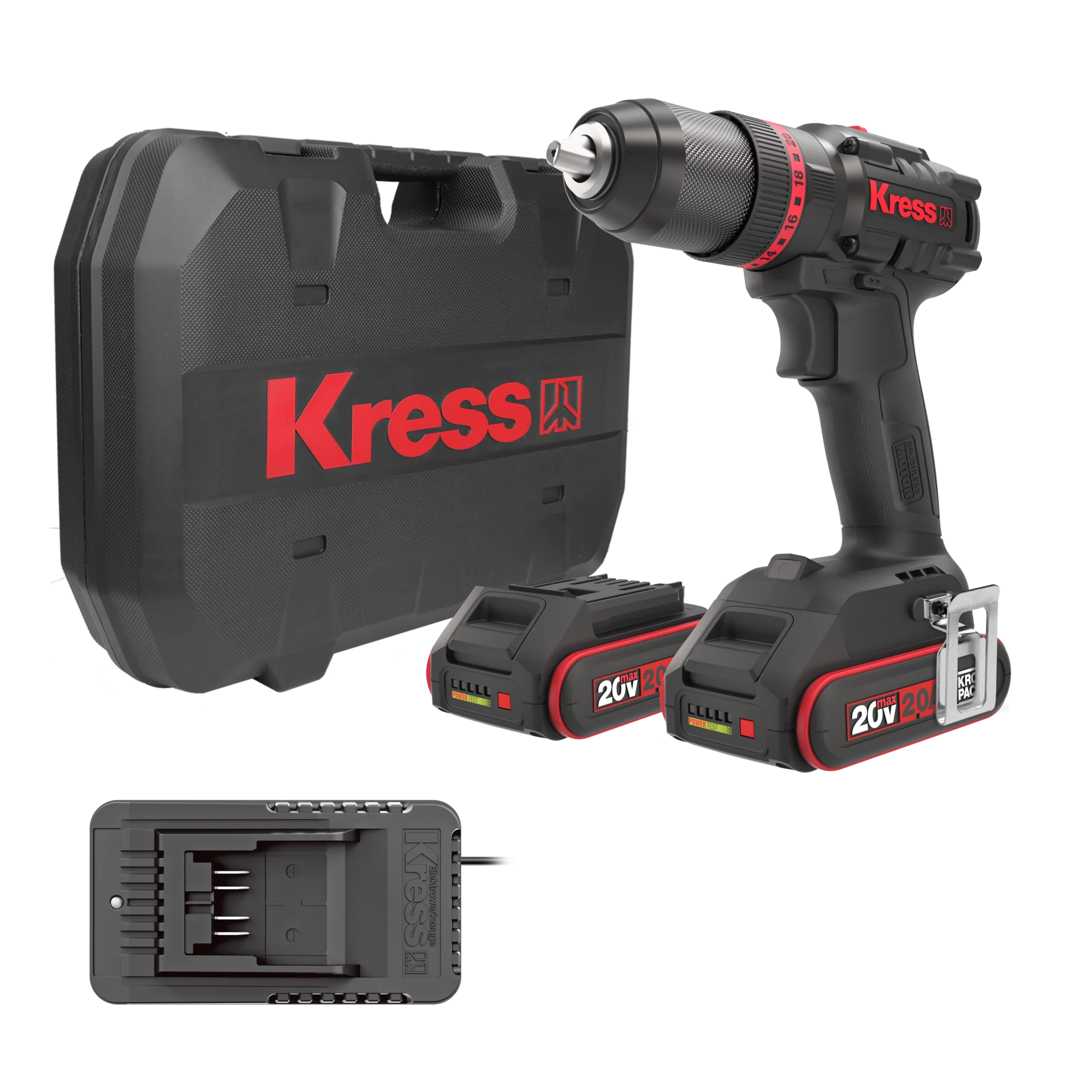 The KUC30.1 cordless impact drill is an innovative and powerful tool equipped with brushless technology. This makes it more compact and durable than comparable drills and also offers a longer operating time. The anvil and hammer system developed by Kress ensures particularly high drilling performance and a powerful maximum torque of 60 Nm.