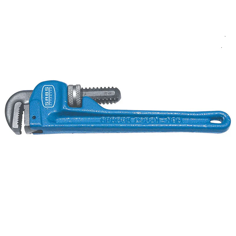 Cast handle, hardened and tempered forged hook. Selected carbon steel, induction hardened jaw teeth, spheroidal graphite cast handle, blue epoxy coated to SANS 1028.