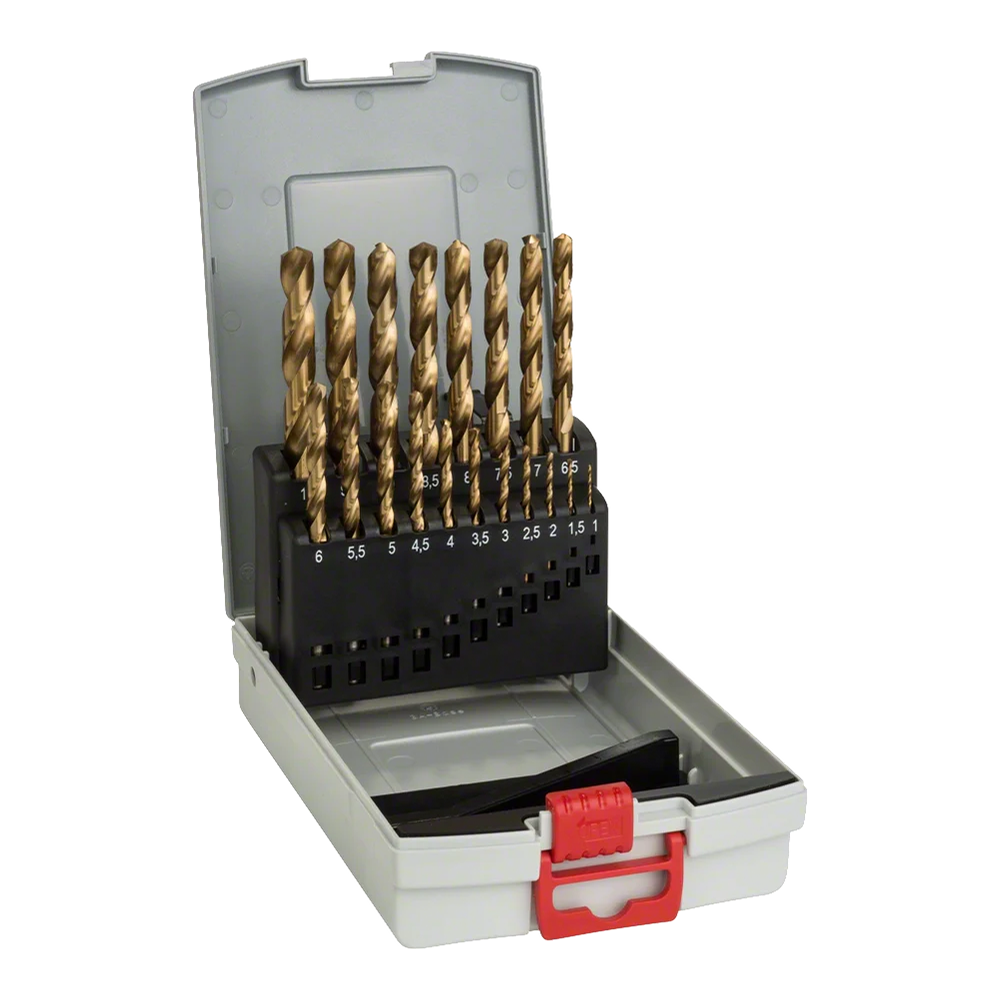 19 Pieces Professional Metal Drill Bit Set with HSS Tin Coating