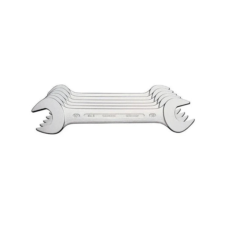- Set incorporating the most popular #6 open-ended double spanner sizes