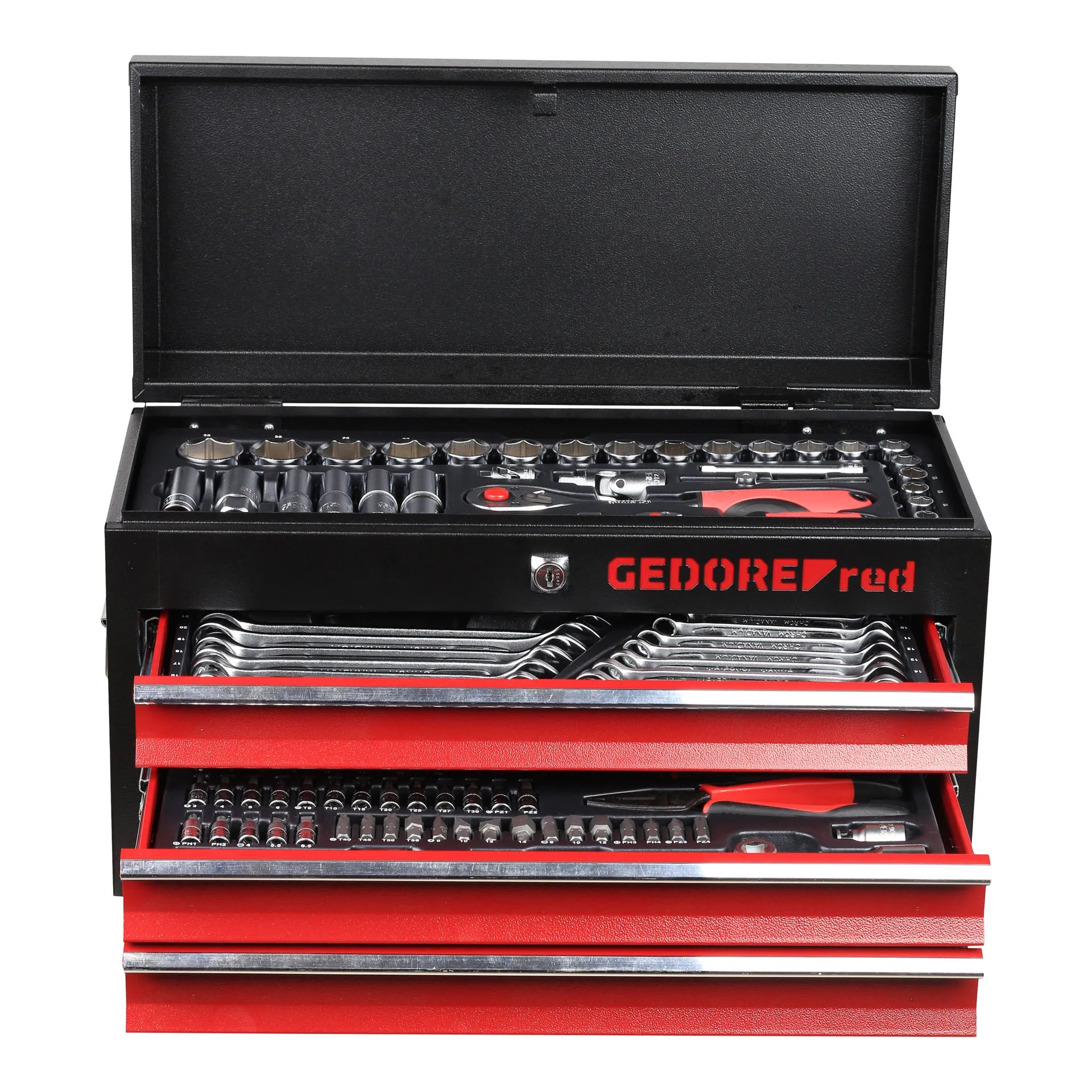 4 compartments, 113 tools and 2 side handles! This comprehensive tool kit is constructed from sturdy steel and includes various types of pliers, deep sockets, combination wrenches and more. Get everything you need in a 520mm box.