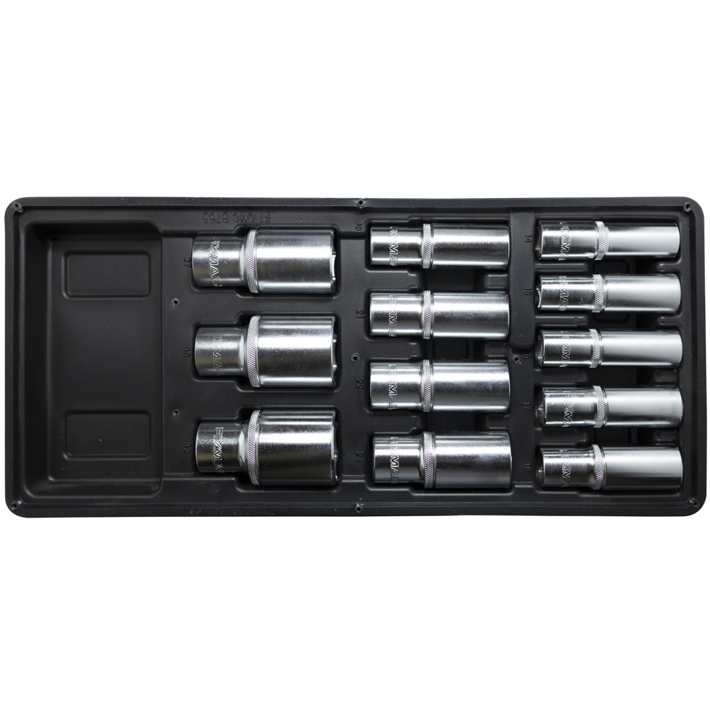 Insert for tool our tool cabinets. Drawer size 1/3, 12 pieces. The set consists of ½ socket wrenches in sizes 14 mm to 32 mm.