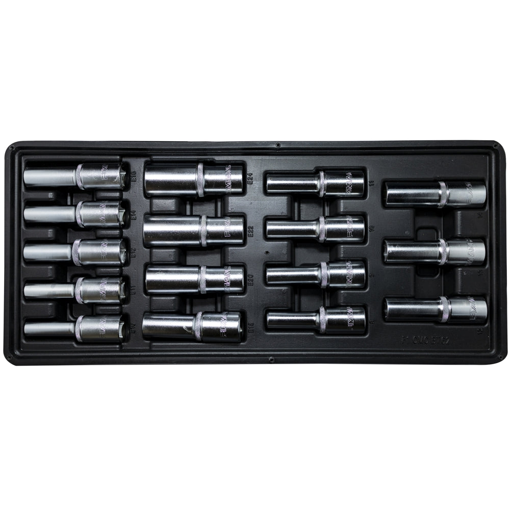 16-piece deep socket set with a tray
