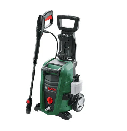 The Universal Aquatak 130 offers fast, flexible and effortless cleaning. Tackle a wide range of cleaning tasks, from garden furniture to gutters, with the Trio Nozzle. Fan, rotary and pencil jet settings meet the individual challenges of each job. Save time cleaning cars with the 450ml high-pressure detergent nozzle. Greater mobility and easy storage are provided by the extendable handle and large wheels. With a quieter pump motor, the high-pressure washer increases cleaning comfort. Push-fit connections and in-use gun storage make cleaning simple.