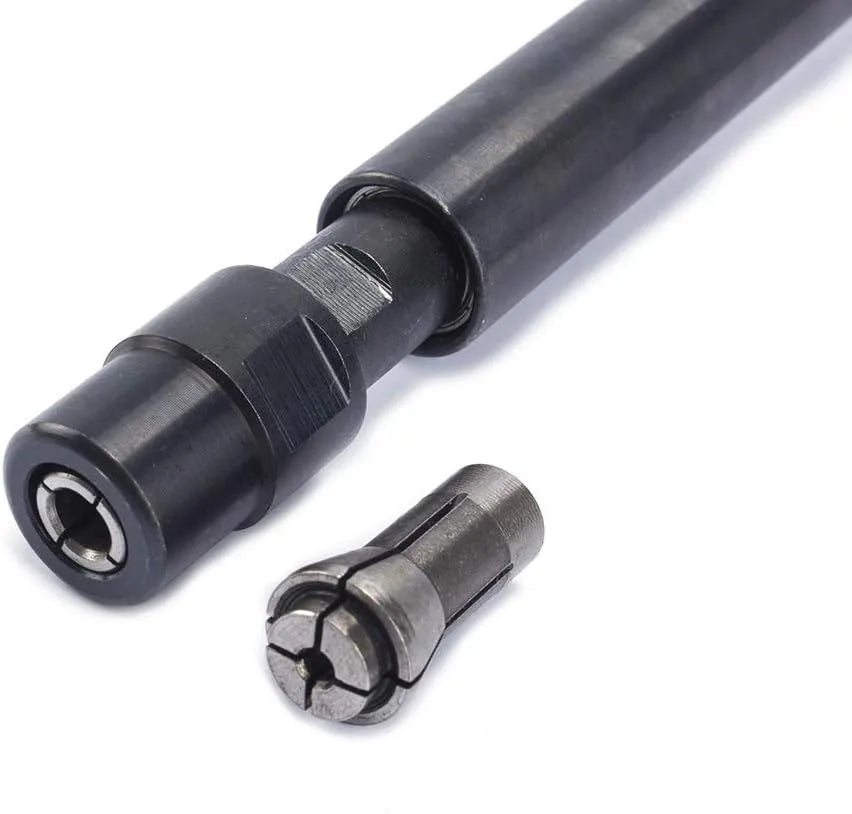 Extended shaft for easy access to hard-to-reach work spaces. Lightweight and low noise. A garage and tire shop must-have! Collet sizes: 1/4" (6mm) and 1/8" (3mm). Working pressure: 90 PSI. Air inlet size: 1/4". Air consumption: 4 CFM. Rear row design prevents material dust from dispersing on the ground, and excess lubricant is discharged through the rear vent. Featuring high speed, low noise, low air consumption, excellent concentricity and ease of operation. An ergonomic handle ensures ease of use and reduces hand fatigue.