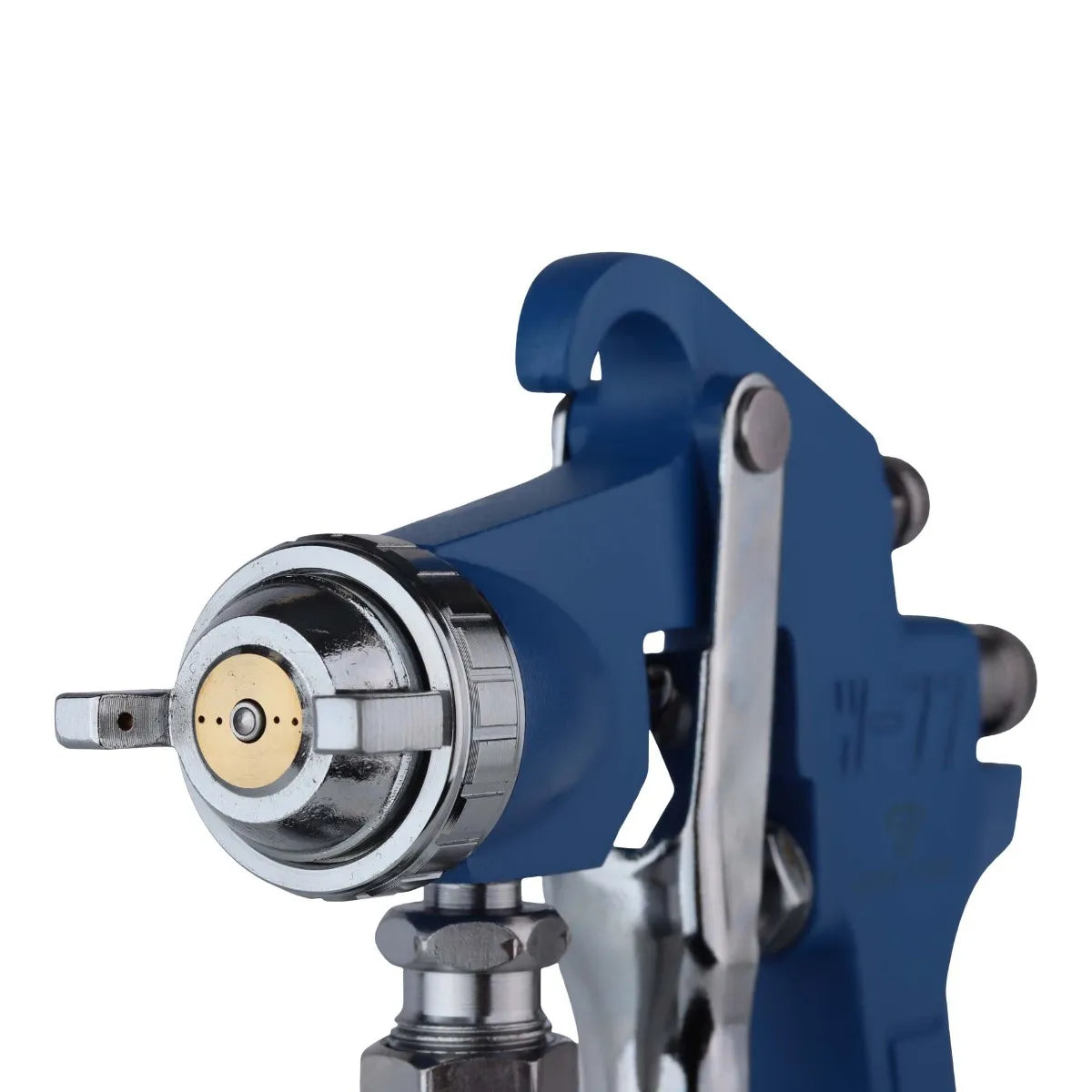 This suction-fed spray gun is adapted for high-pressure output, delivering superior performance with a 2.0mm tip size and 1000cc spray capacity. Its efficient air consumption rate of 4.2 to 7.1 CFM (119 - 201 L/min) ensures consistent spraying, making it suitable for a variety of viscous materials. The gun’s 6-pattern shot count and adjustable controls for air, fluid and fan provide a customizable painting experience, while the 180 to 280mm pattern width gives you the flexibility to cover large surfaces with precision.