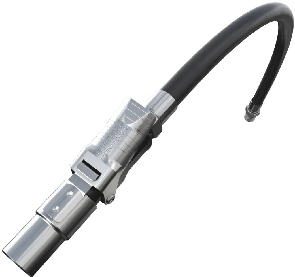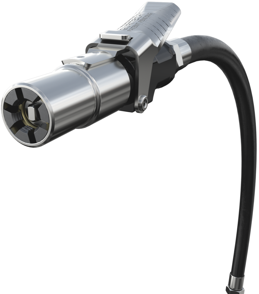 Secure Locking Air Chuck. When you inflate, it stays on! Simply press the trigger to lock the air chuck onto the tire valve or to release the air chuck. Easy snap on/off. No need to hold while inflating. Lock and release both hands. Patent pending design. Note: Hose is not included.