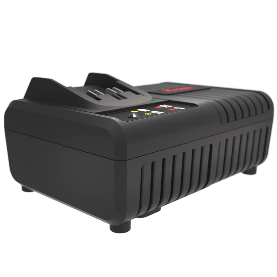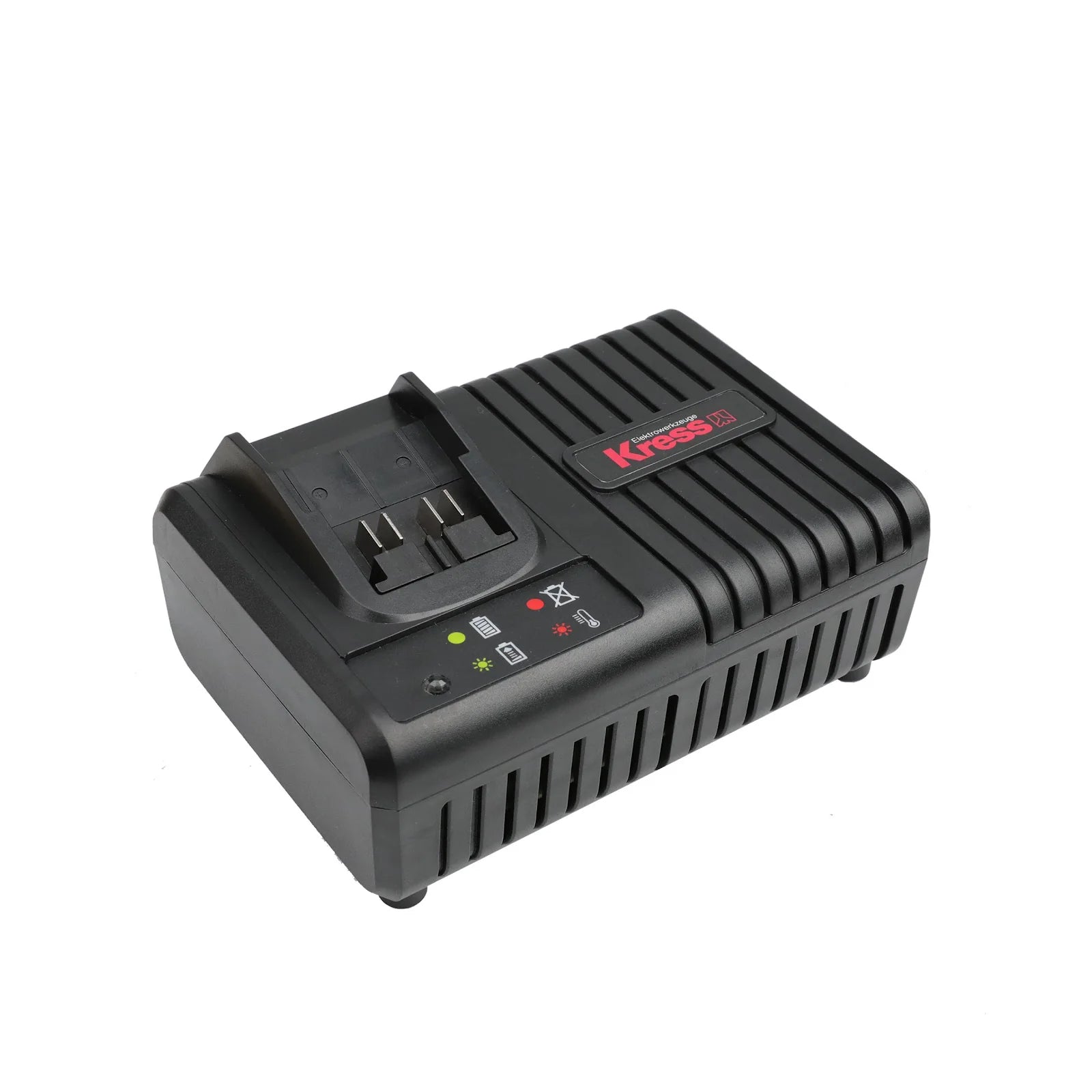 O carregador rápido KRESS 20V Max 6A carregará sua bateria KRESS KROSSPACK® 4.0Ah em 45 minutos e uma bateria KRESS KROSSPACK® 20V Max 6.0Ah em 65 minutos. Inclui inteligência integrada que protege contra sobre/subtensão, maximiza a corrente de carga e descarga e a faixa de temperatura operacional. A função de resfriamento de ar serve para gerenciamento ativo da temperatura, reduzindo efetivamente a temperatura de carregamento, equalizando a temperatura do carregador e prolongando a vida útil do carregador. Possui 4 indicadores de carga da bateria, fornecendo status de carga, sobrecarga de temperatura ou problema de bateria.