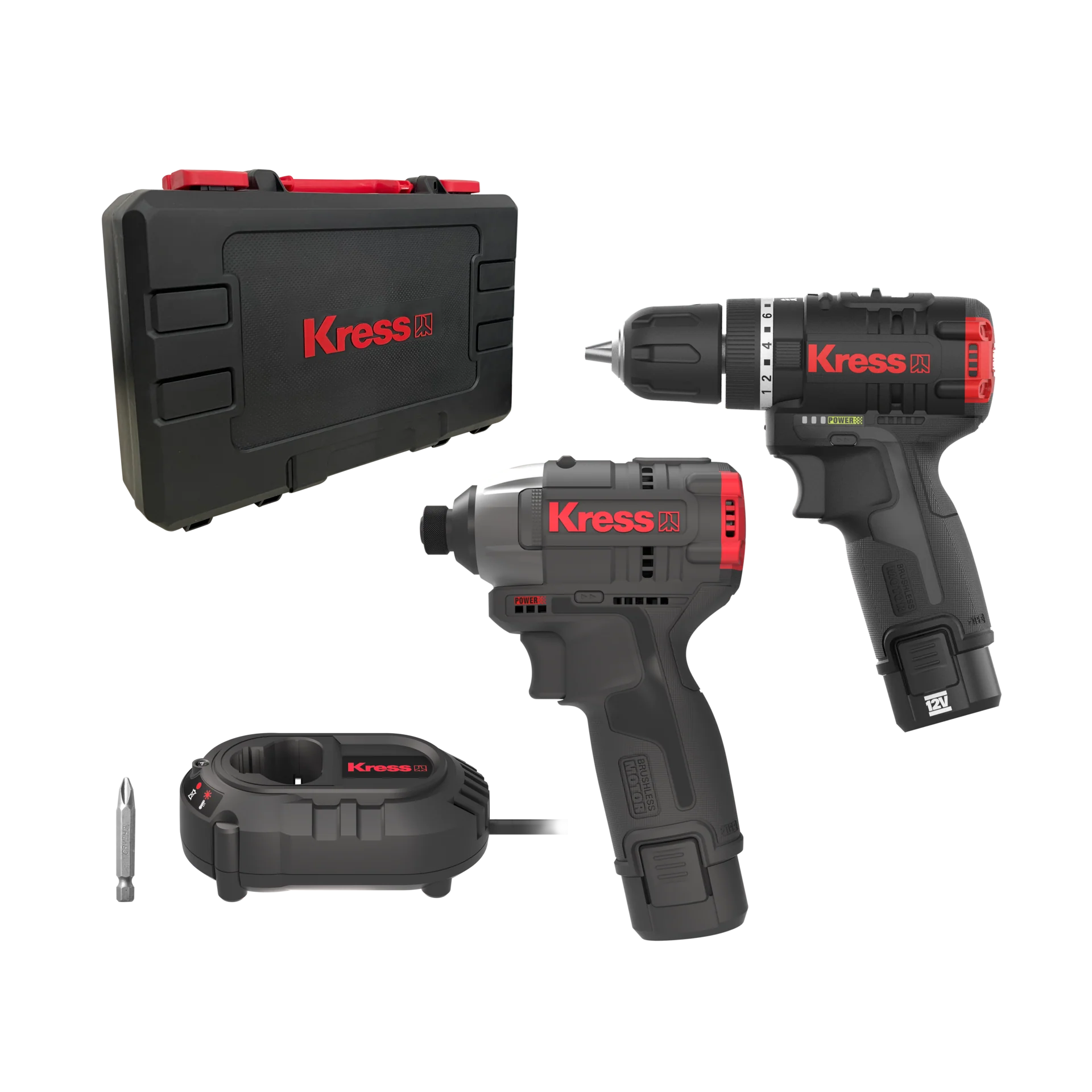Apresentando o poderoso e versátil 12V BL Combo da KRESS Powertools DC! Esta combinação excepcional inclui um martelo perfurador com 40 Nm de torque e uma chave de impacto com impressionantes 140 Nm de torque, tornando-o o conjunto de ferramentas definitivo para todas as suas necessidades de perfuração e fixação.