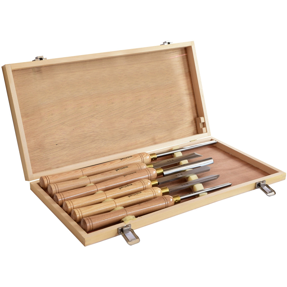 Conjunto de formão de torneamento HSS em madeira de 6 peças em em caixa de madeira