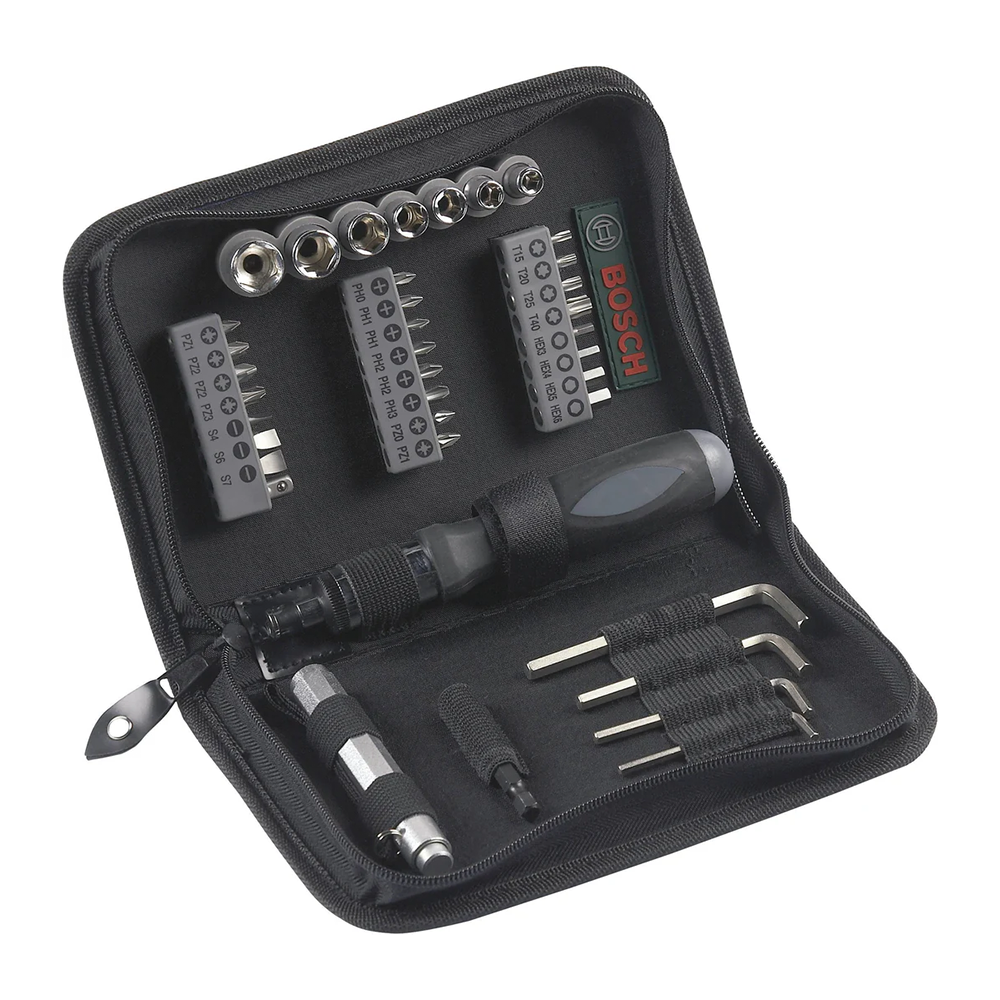• 23 bits 25 mm: PH0, 2x PH1, 2x PH2, PH3, PZ0, 2x PZ1, 2x PZ2, PZ3, S4, S6, S7, HEX Ø3/4/5/6mm, T15, T20, T25, T40