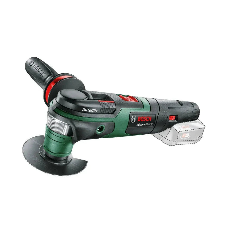 AdvancedMulti 18 permite que as velocidades sejam adaptadas às necessidades de cada trabalho e material. Para uma visibilidade ideal, uma faixa de luz de 180° fornece iluminação consistente. Mudanças de acessórios rápidas e fáceis em 3 segundos são possíveis graças ao Bosch AutoClic. Uma ampla gama de acessórios Starlock opcionais abrange uma infinidade de aplicações. Cortar, serrar, lixar, raspar, fresar e polir madeira, metal, plástico, gesso cartonado, argamassa e argamassa. A ferramenta pertence à POWER FOR ALL ALLIANCE. Uma bateria pode operar uma grande variedade de ferramentas de diferentes marcas.
