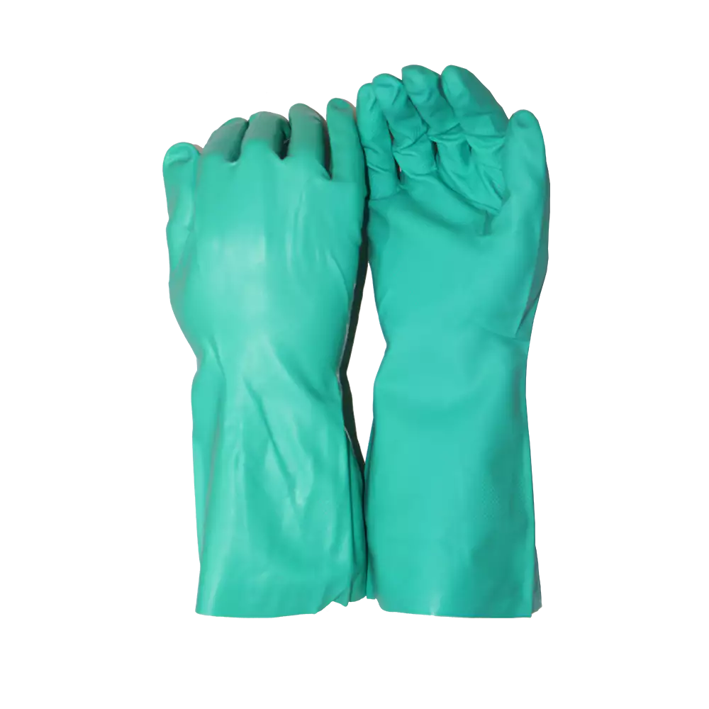 Luva de manipulação química em nitrilo verde. O revestimento de nitrila flexível e suave de 15mil resistirá a condições químicas. Os níveis de proteção são medidos na área da palma da luva. Categoria de segurança intermediária.