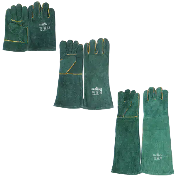 As luvas possuem punho confeccionado em couro de vaca e forro de algodão que resiste ao calor entre 140 e 175 graus Celsius. As luvas podem ser usadas para fins de aplicação geral, mas não são adequadas para uso com quaisquer produtos químicos de qualquer tipo, como ácidos, bases e solventes.