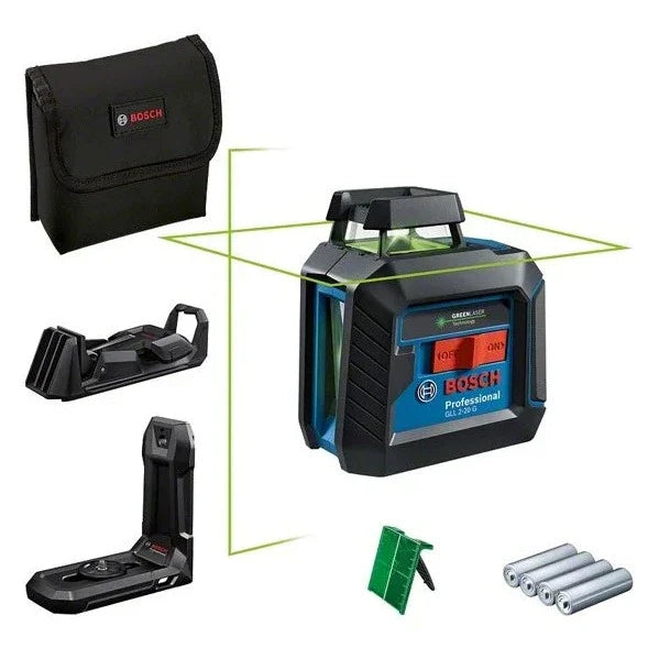 Laser de linha profissional GLL 2-20G+LB10+DK10 - Nível de laser de linha com linha verde horizontal de 360°
