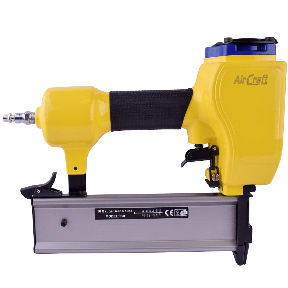 A pistola de pregos usa pregos de espessura de calibre 16 e é usada principalmente nas indústrias de marcenaria e acabamento de carpintaria para se assemelhar a pinos de painel.