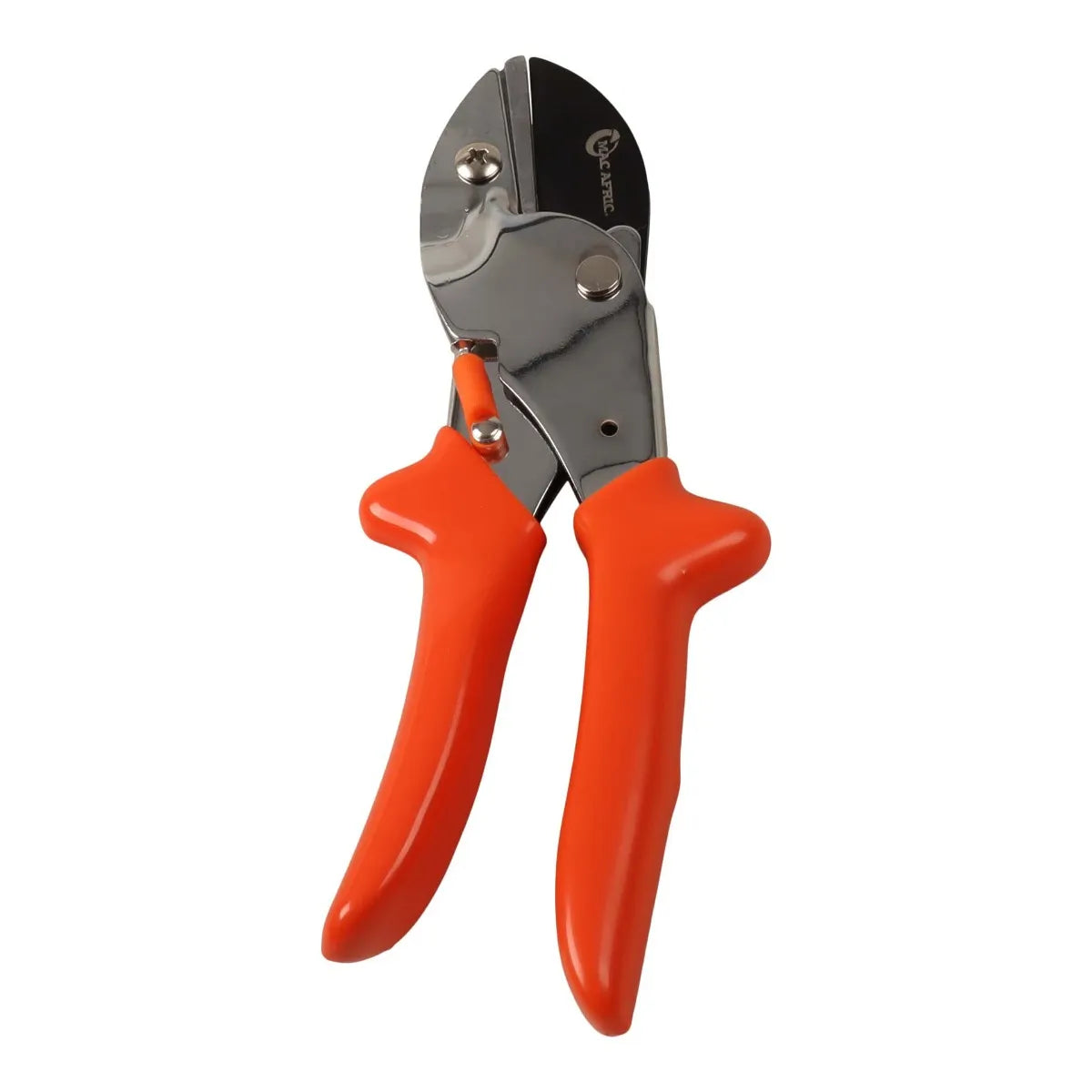 Esta ferramenta é amplamente utilizada para cortar ramos com eficácia com diâmetros de até 18 mm, incluindo ramos mortos, velhos e novos. O design da placa de corte apresenta um mecanismo antiderrapante para segurar os galhos com segurança durante o corte. Para armazenamento, inclui uma fivela conveniente para fácil fixação. A alça ergonômica garante conforto e durabilidade. Além disso, possui uma mola integrada, demonstrando fortes capacidades de recuperação.