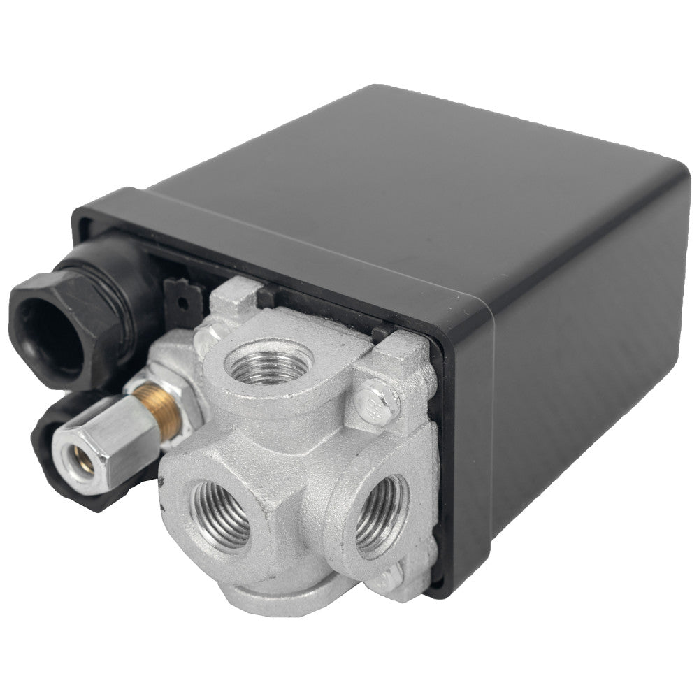 O pressostato é usado para iniciar e parar um compressor para manter a pressão em um sistema pneumático.