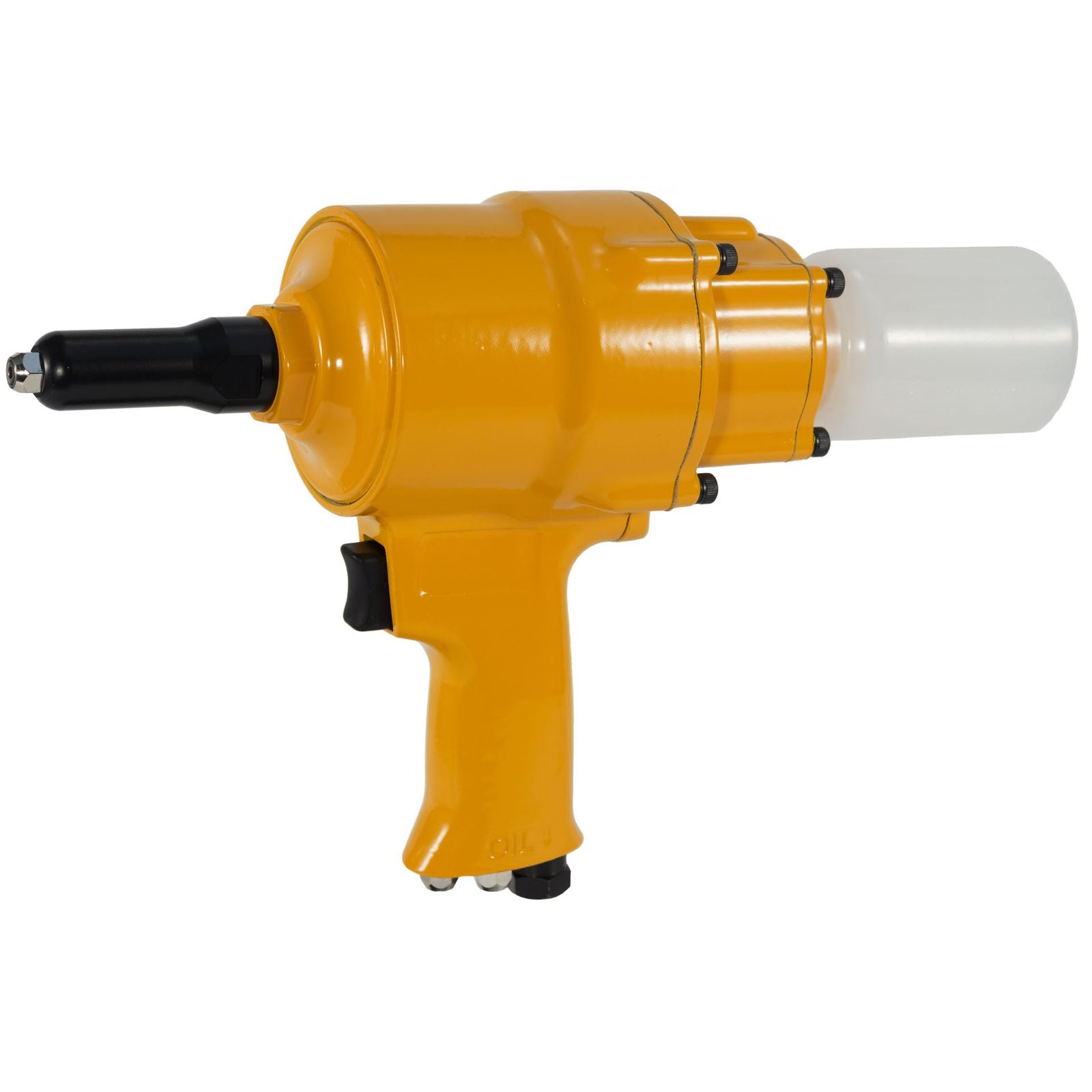Pistola pneumática de rebites equipada com mandíbulas especiais para utilização de rebites de alumínio.