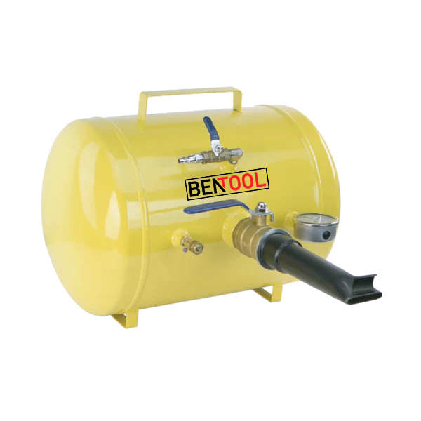 O BB-05 foi projetado para auxiliar na inflação de pneus sem câmara, ajustando o talão com uma liberação rápida da pressão do ar. Para usá-lo com eficiência, basta encher o tanque até a pressão necessária e conectar uma linha de ar à haste da válvula da roda. Em seguida, aponte o cano entre o talão do pneu e o flange da roda e solte a válvula manual para permitir que uma rajada de ar ajuste o talão. Usado em pneus de automóveis, quadriciclos e caminhões.