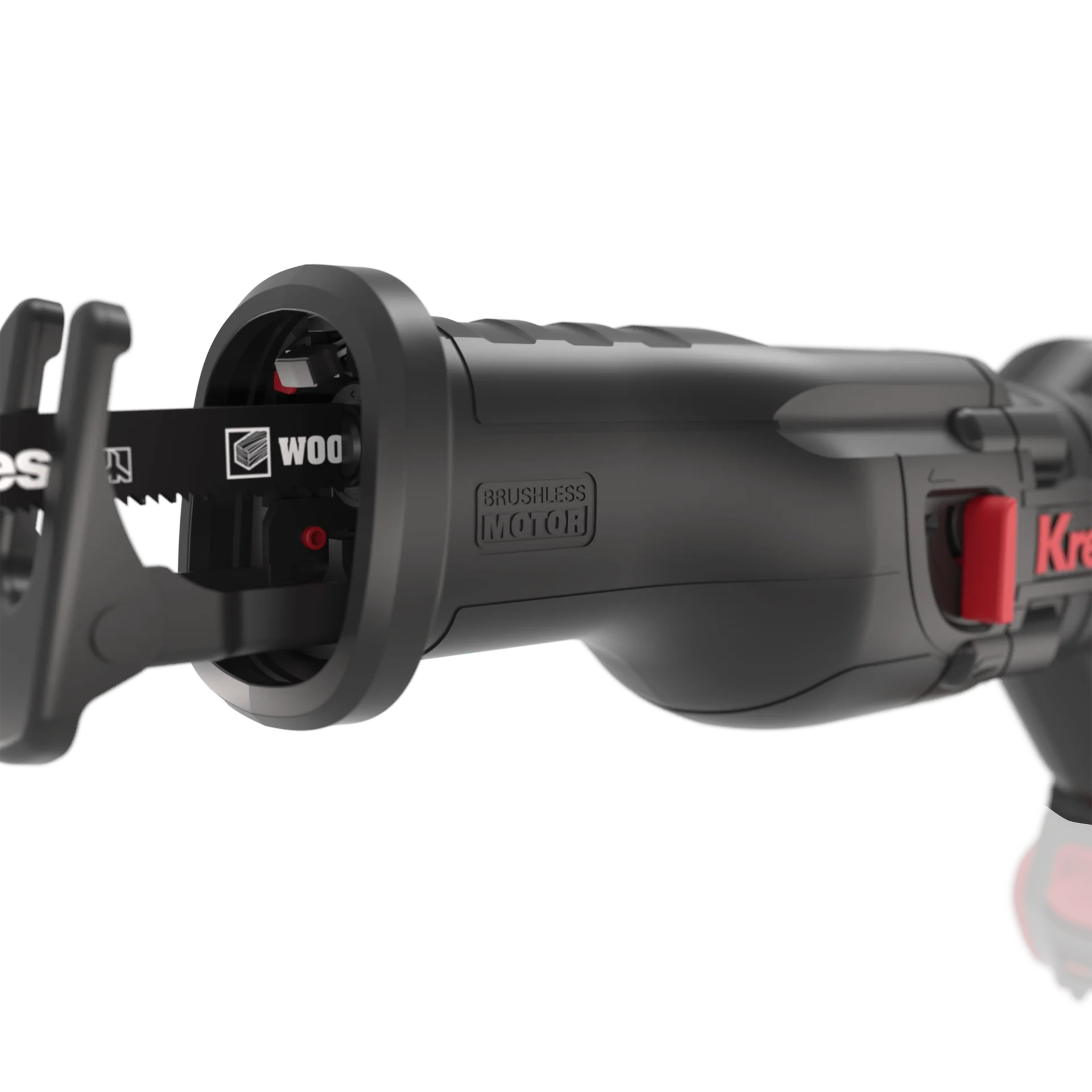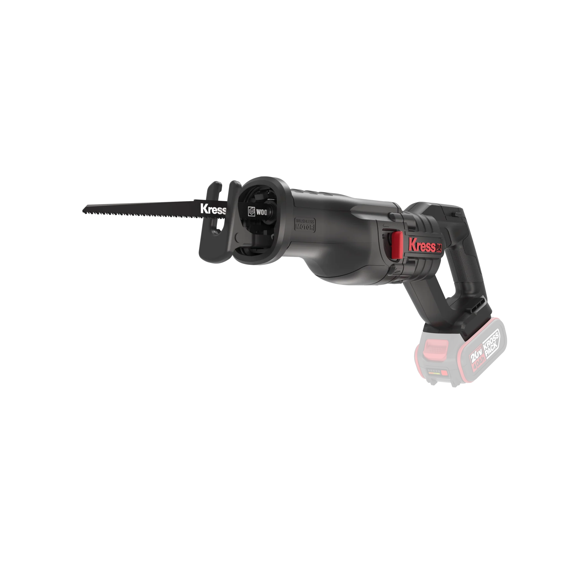 A serra alternativa sem escova KRESS 20V Max apresenta tecnologia de motor sem escova que oferece tamanho mais compacto, vida útil do motor até 10 vezes mais longa e 50% mais tempo de operação. Possui uma caixa de engrenagens de alumínio, troca de lâmina sem ferramenta SDS e comprimento de curso de 29 mm, além de inicialização suave para economizar energia da bateria antes de iniciar sua tarefa. Uma bota frontal emborrachada auxilia no aumento do controle durante o uso, e a luz LED ajuda em áreas de trabalho escuras ou mal iluminadas. Inclui 1 lâmina de corte de madeira e 1 lâmina de corte de metal. Todos os produtos KRESS são compatíveis com as baterias 20V Max KROSSPACK®; KAB21 (4,0Ah) e KAB24 (6,0Ah) e carregador KAC21 (não incluído).