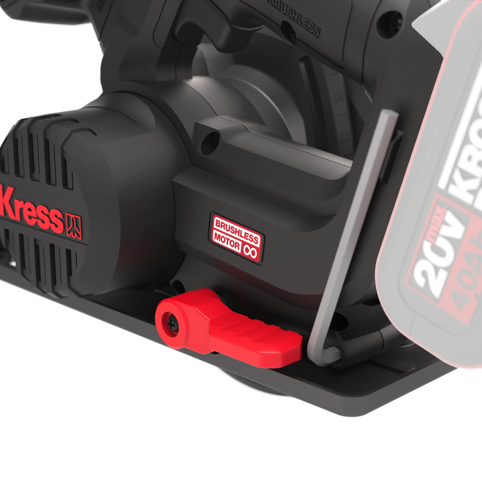 A serra circular KRESS 20V Max Brushless 165 mm apresenta tecnologia de motor sem escova que oferece tamanho mais compacto, vida útil do motor até 10 vezes mais longa e 50% mais tempo de operação. Ele oferece um design compacto com profundidade de corte de 54 mm e ajuste de ângulo de 0 a 50 graus. Possui função de freio para garantir a segurança do usuário, uma luz LED para uso em áreas de trabalho escuras ou mal iluminadas e possui armazenamento integrado para a chave hexagonal da lâmina. Inclui 1 x chave sextavada de lâmina, 1 x guia paralela, 1 x adaptador de vácuo e 1 x lâmina de serra 24T 165mm. Todos os produtos KRESS são compatíveis com as baterias 20V Max KROSSPACK®; KAB21 (4,0Ah) e KAB24 (6,0Ah) e carregador KAC21 (não incluído).