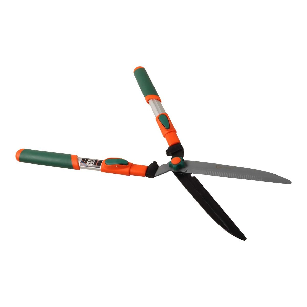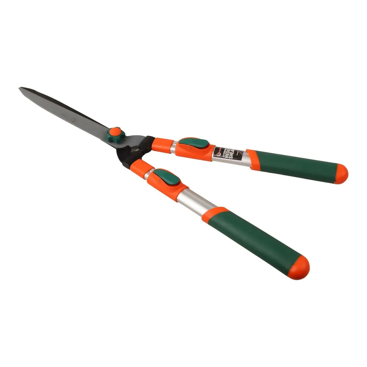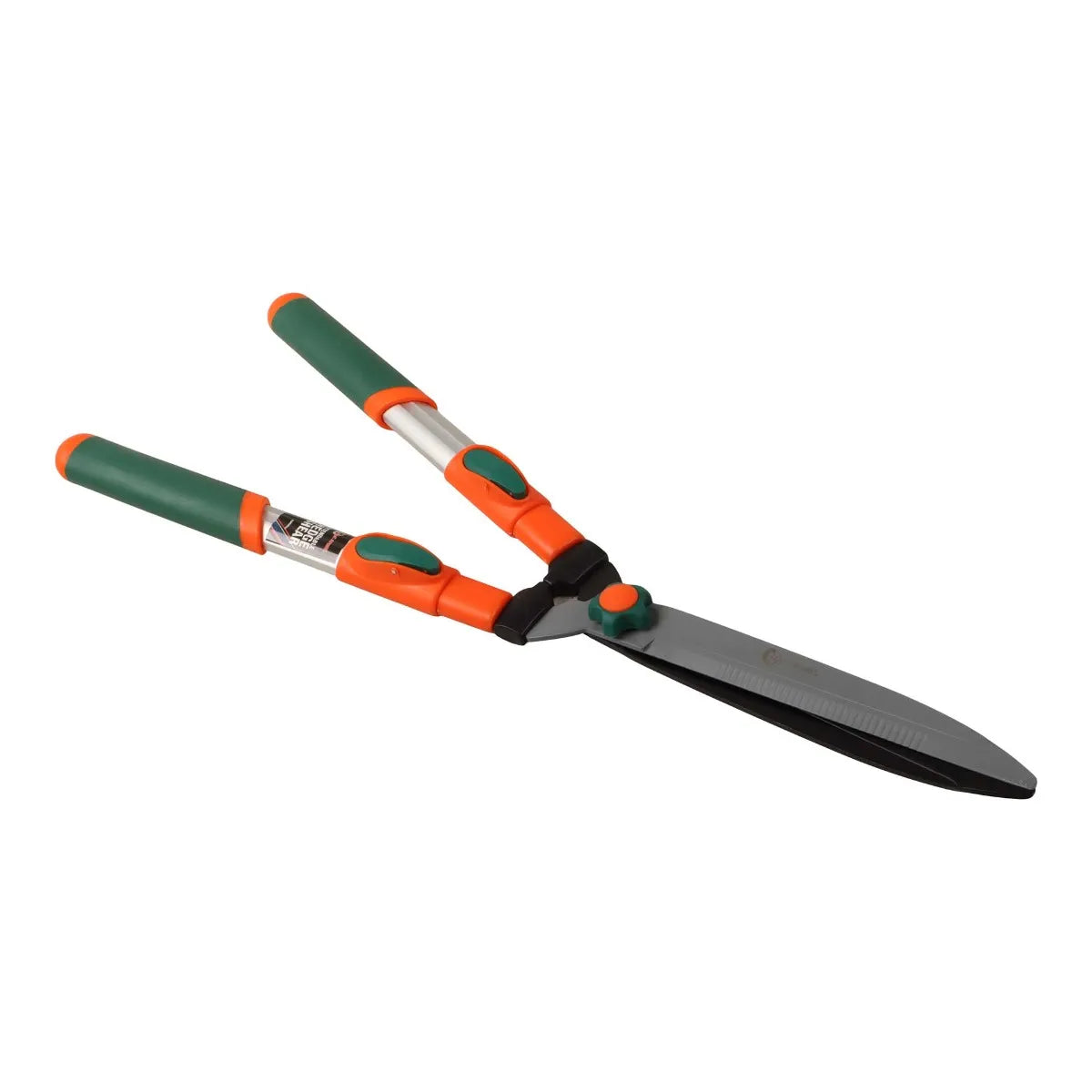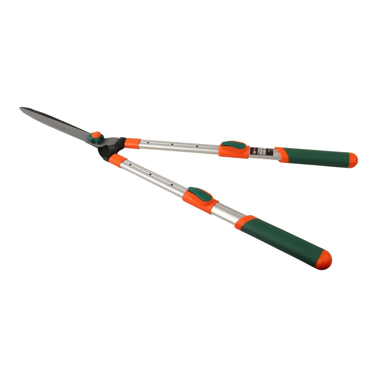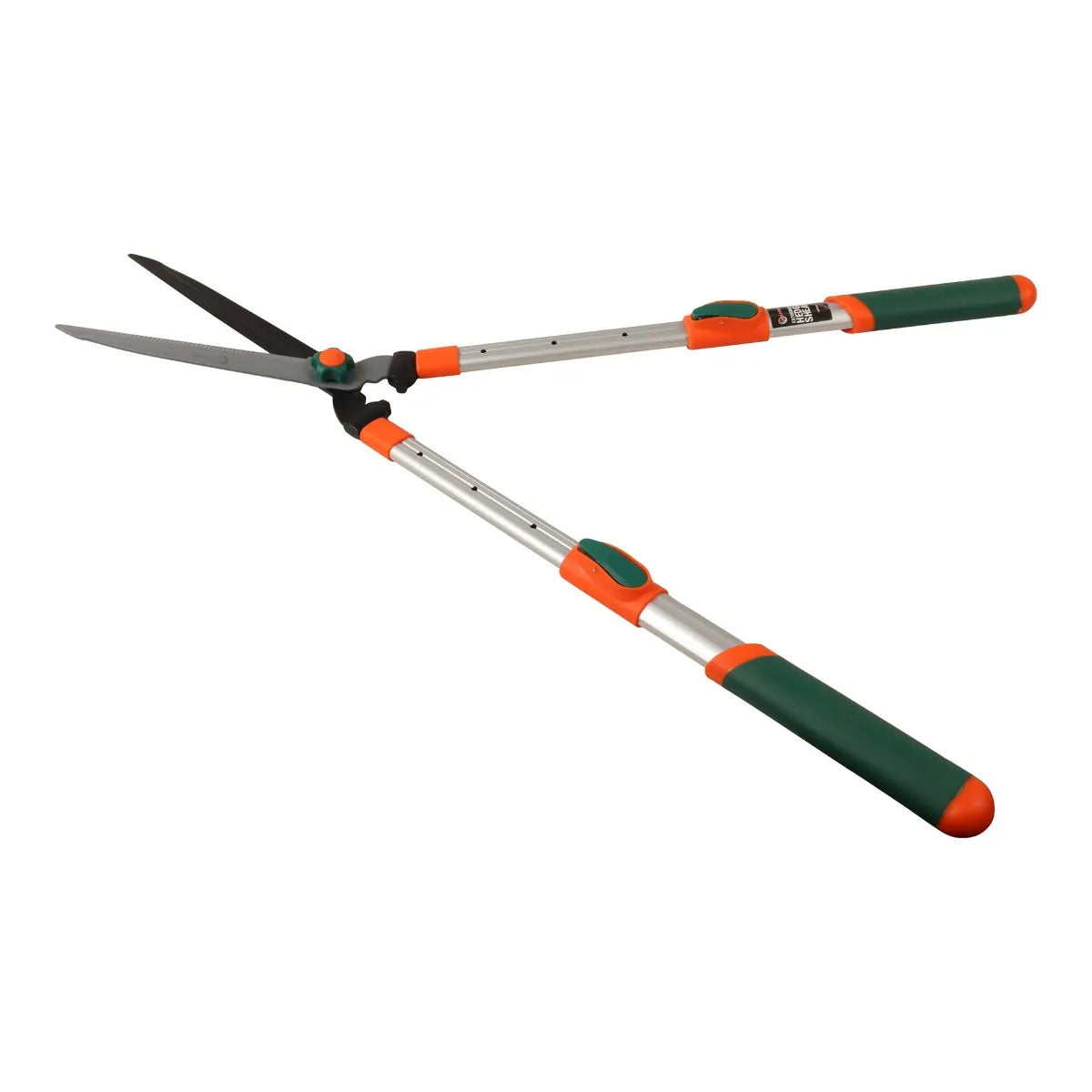A tesoura ajustável para jardim para sebes oferece versatilidade com seu design extensível, permitindo ajustes de 670 mm a 1000 mm de comprimento. Possui lâmina de aço SK5 com revestimento antiaderente, aumentando a durabilidade e prolongando sua vida útil. Além disso, esta tesoura possui uma capacidade de corte substancial de 75 mm, tornando-a ideal para uma variedade de tarefas de corte de jardim.