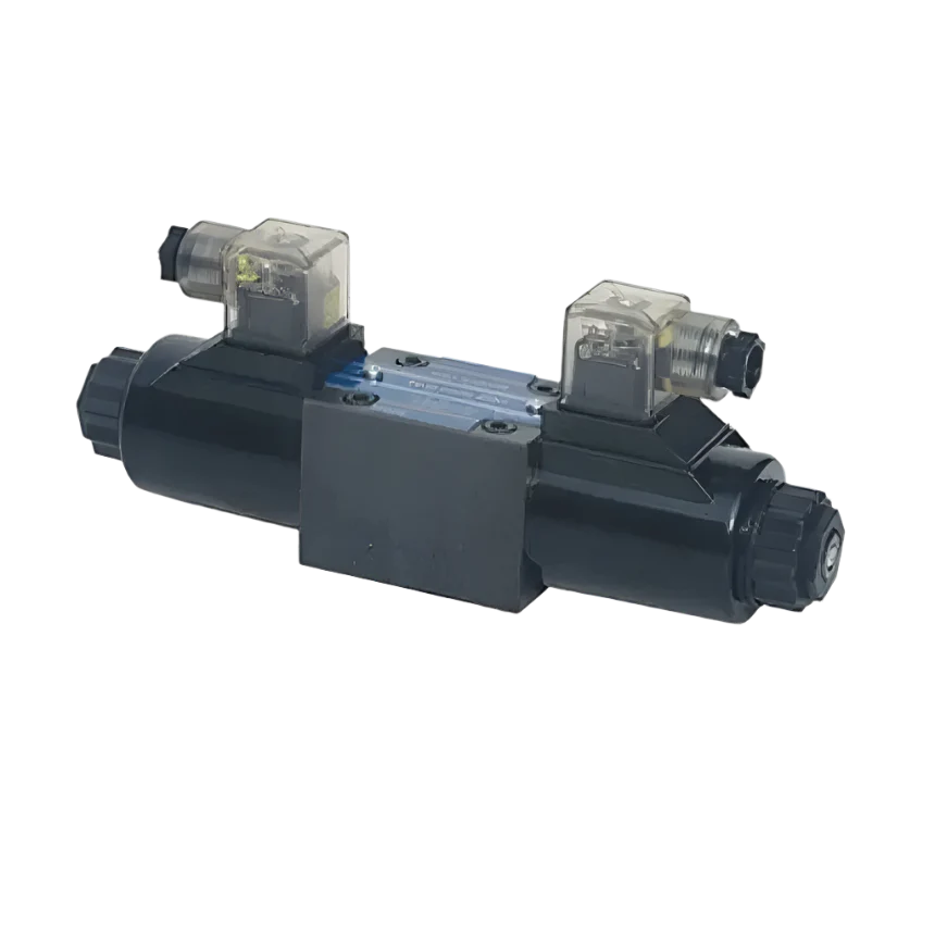 Válvula de mola centralizada com solenóide duplo NG6 DC com A e B aberto com P aberto para T no centro