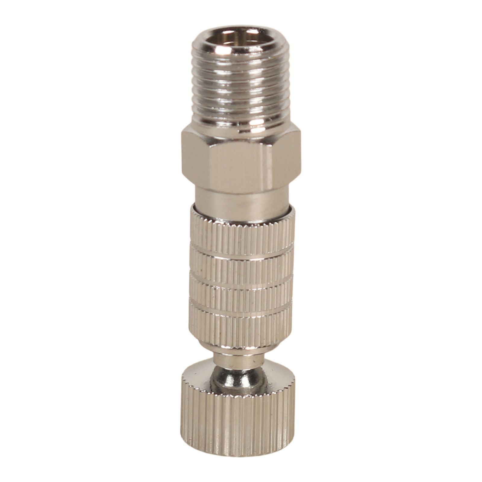 Para alternar rapidamente entre vários aerógrafos sem perder tempo, use o Quick Coupler For Air Brush. Macho de 1/8" em uma extremidade e encaixe fêmea de 1/8" na outra extremidade. Este acoplamento também gira, ajudando a eliminar dobras na mangueira.