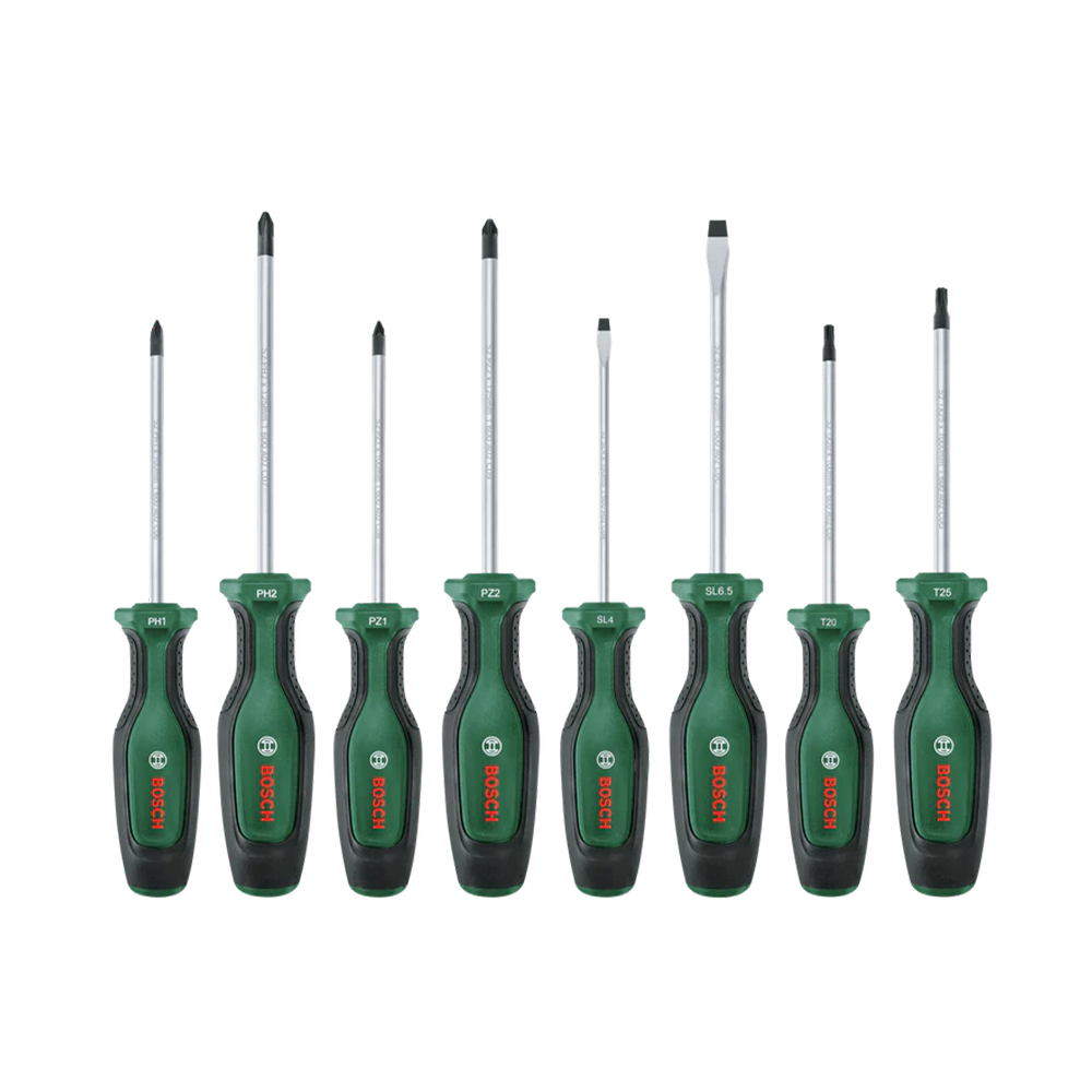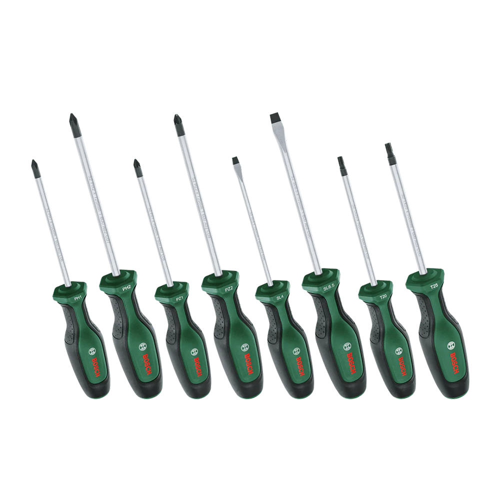Faça qualquer trabalho de fixação de forma rápida e eficiente com uma chave de fenda de alta qualidade do conjunto de chaves de fenda da Bosch. Essas chaves de fenda são criadas pensando no desempenho superior e no conforto superior: cada uma é feita do melhor aço S2 duro da categoria, oferece um torque robusto de pelo menos 20% acima do padrão DIN e é ergonomicamente projetada para força ideal.