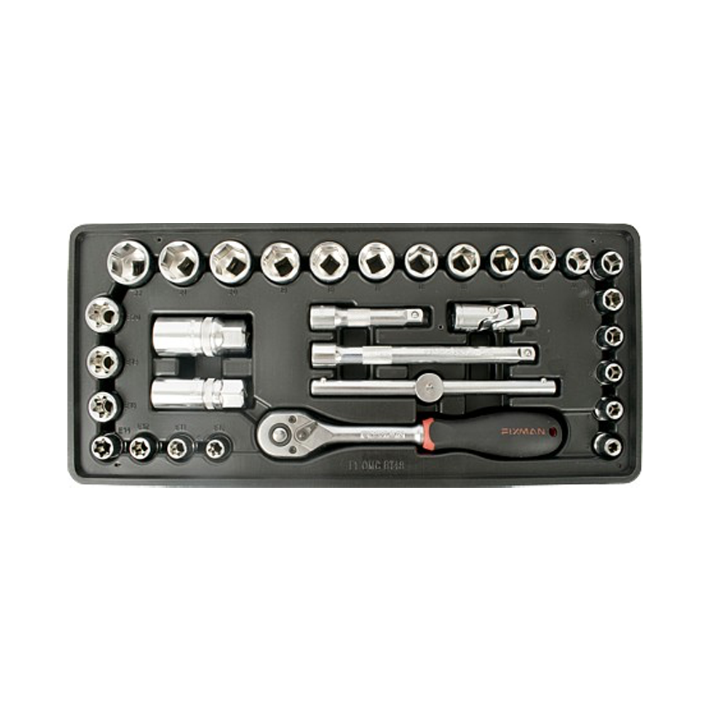 Insira para ferramenta nossos armários de ferramentas. Tamanho de gaveta 1/3, 31 peças. O conjunto é composto por chave de caixa de 3/8 pol., chaves de caixa de 3/8 pol. nos tamanhos 6 a 22 mm com acessórios.