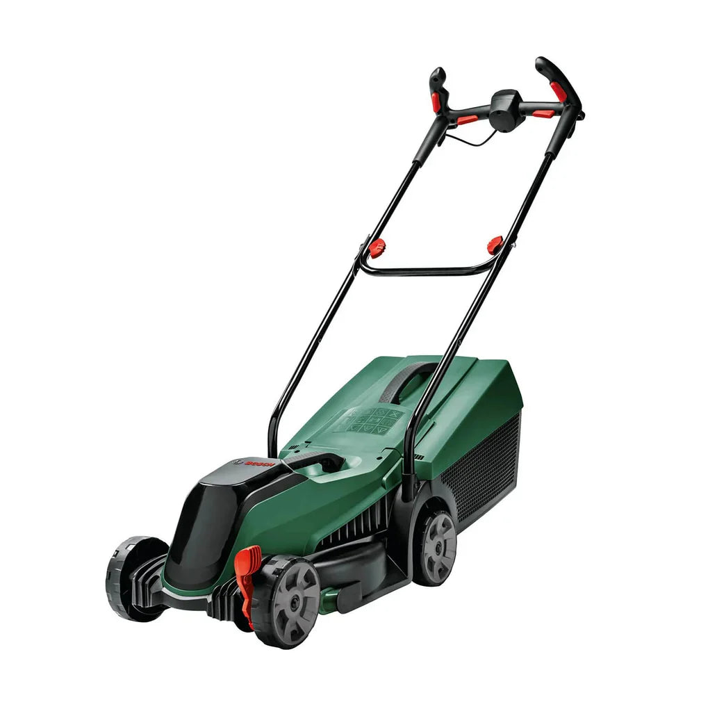 As alças Ergoflex proporcionam fácil manuseio e proporcionam uma postura saudável e confortável durante o trabalho. O produto também possui um controle de alavanca com uma faixa de altura de corte de 3 etapas de 30 a 60 mm para selecionar facilmente a altura preferida do gramado. Os pentes para relva garantem um corte limpo ao longo das paredes e bordas, e a pega de transporte integrada significa que o cortador pode ser levantado e transportado confortavelmente entre locais.
