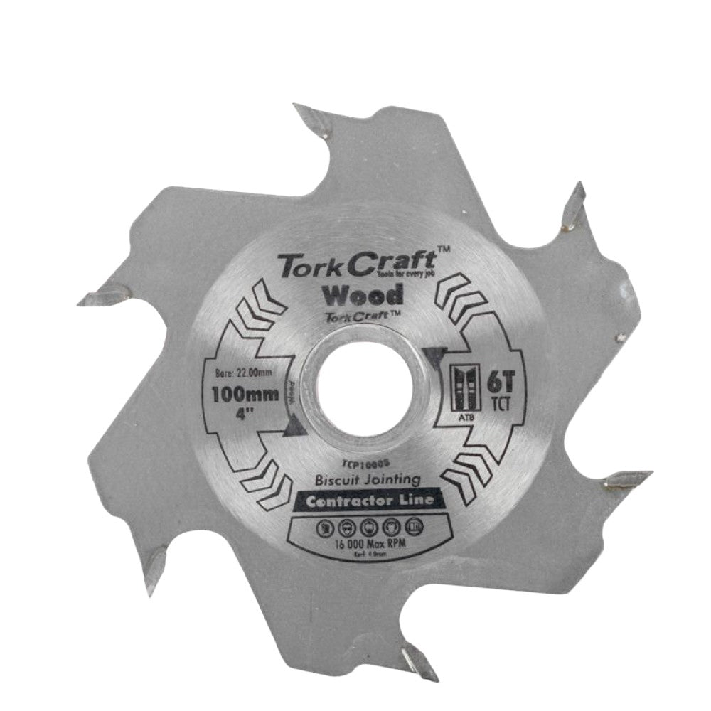 Esta lâmina para unir biscoitos Tork Craft tem 100 mm de diâmetro e dentes de carboneto de tungstênio de 8 mm para produzir uma ranhura precisa para biscoitos. Com um furo de 22 mm, cabe em quase todas as juntas de biscoitos conhecidas. Uma lâmina de alta qualidade para uso comercial ou profissional.