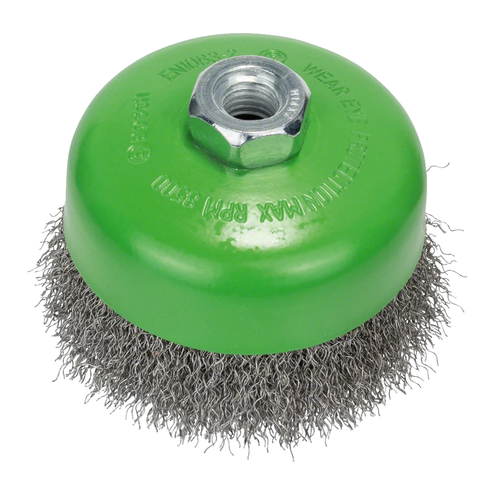 A escova Clean for Inox Wire Cup proporciona um acabamento superficial extrafino.