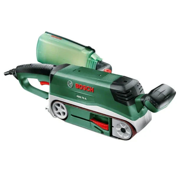 Enfrente projetos de lixamento difíceis com a lixadeira de cinta PBS 75 A e desfrute de um manuseio confortável com remoção de material altamente eficaz. Seu potente motor de 710 W proporciona progresso rápido em superfícies planas maiores. Experimente um manuseio ideal graças a uma alça auxiliar removível.
