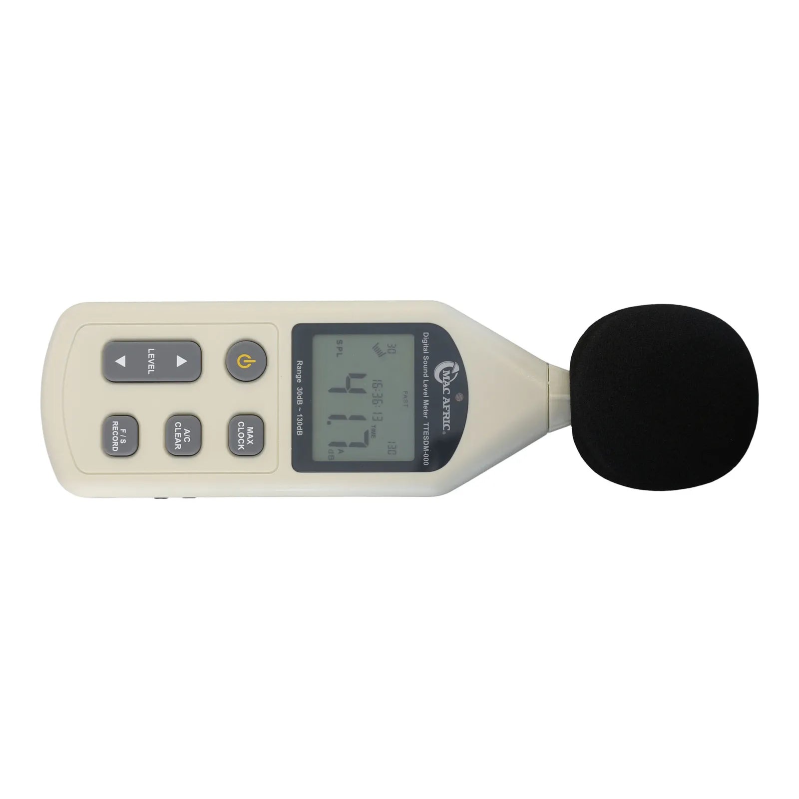 O medidor de nível sonoro digital MAC AFRIC é um medidor de nível sonoro digital de alto desempenho. Ideal para medir níveis de ruído para engenheiros de ruído, controle de qualidade de ruído e prevenção de saúde em vários ambientes em escritórios, ambientes industriais, aeroportos, edifícios públicos, etc. Características: A faixa de medição é de 30 a 130dB Seleção de ponderação de tempo rápida/lenta Retroiluminação automática O função de retenção de valor máximo Desligamento automático após 10 minutos Seleção de ponderação de frequência A/C Ambas as saídas de sinal AC e PWM estão disponíveis Função de calendário Armazenamento de registros de dados 4700.