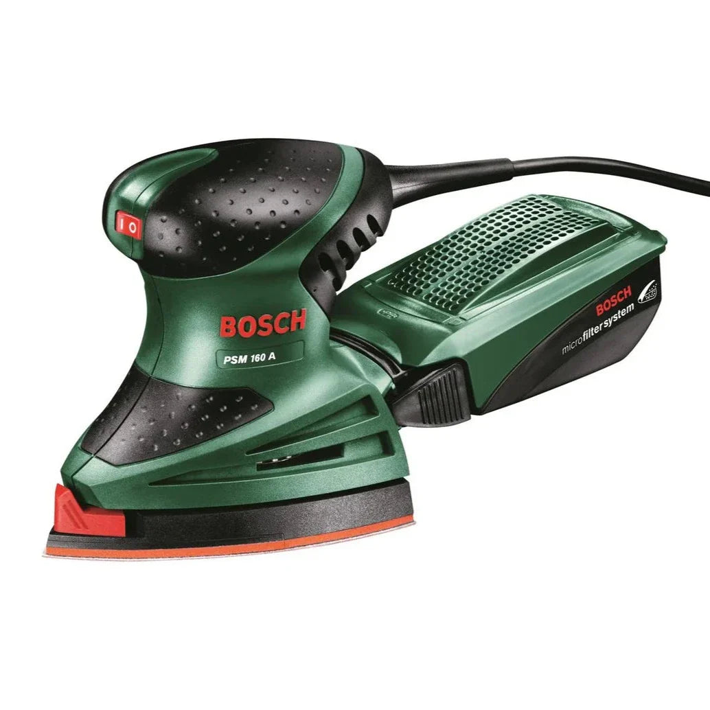 O potente polivalente (160 watts) para lixar e polir, mesmo em áreas de difícil acesso e em pequenas superfícies. Trabalho limpo graças ao sistema de microfiltro da Bosch: o elemento de extração de pó integrado aspira o pó diretamente para a caixa de microfiltro, que vem completa com a ferramenta. Fixação tipo velcro para troca rápida e conveniente da folha de lixa.