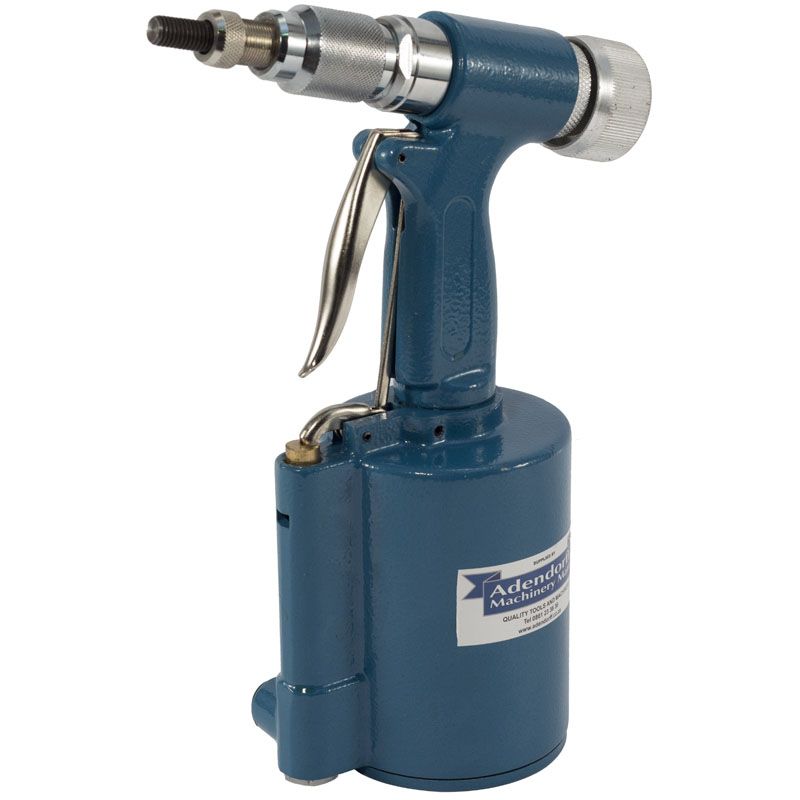 Pistão rebitador de porca hidráulica pneumática para maior potência. Ajusta porcas de rebite até M10. Sequência de colocação rápida. O gatilho de um estágio apenas uma atuação do gatilho gira a porca do rebite em um mandril roscado que colapsa a porca do rebite.