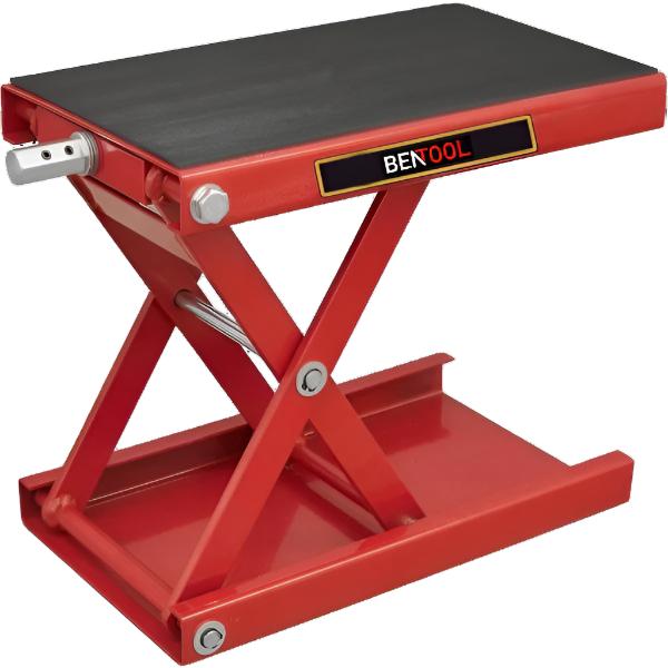 Os suportes de tesoura são adequados para um elevador de motocicleta ou no chão. Equipados com rolos de rolamento de esferas para elevação e abaixamento suaves. Levante manualmente ou com uma barra T deslizante. Vem com borracha antiderrapante para maior segurança.